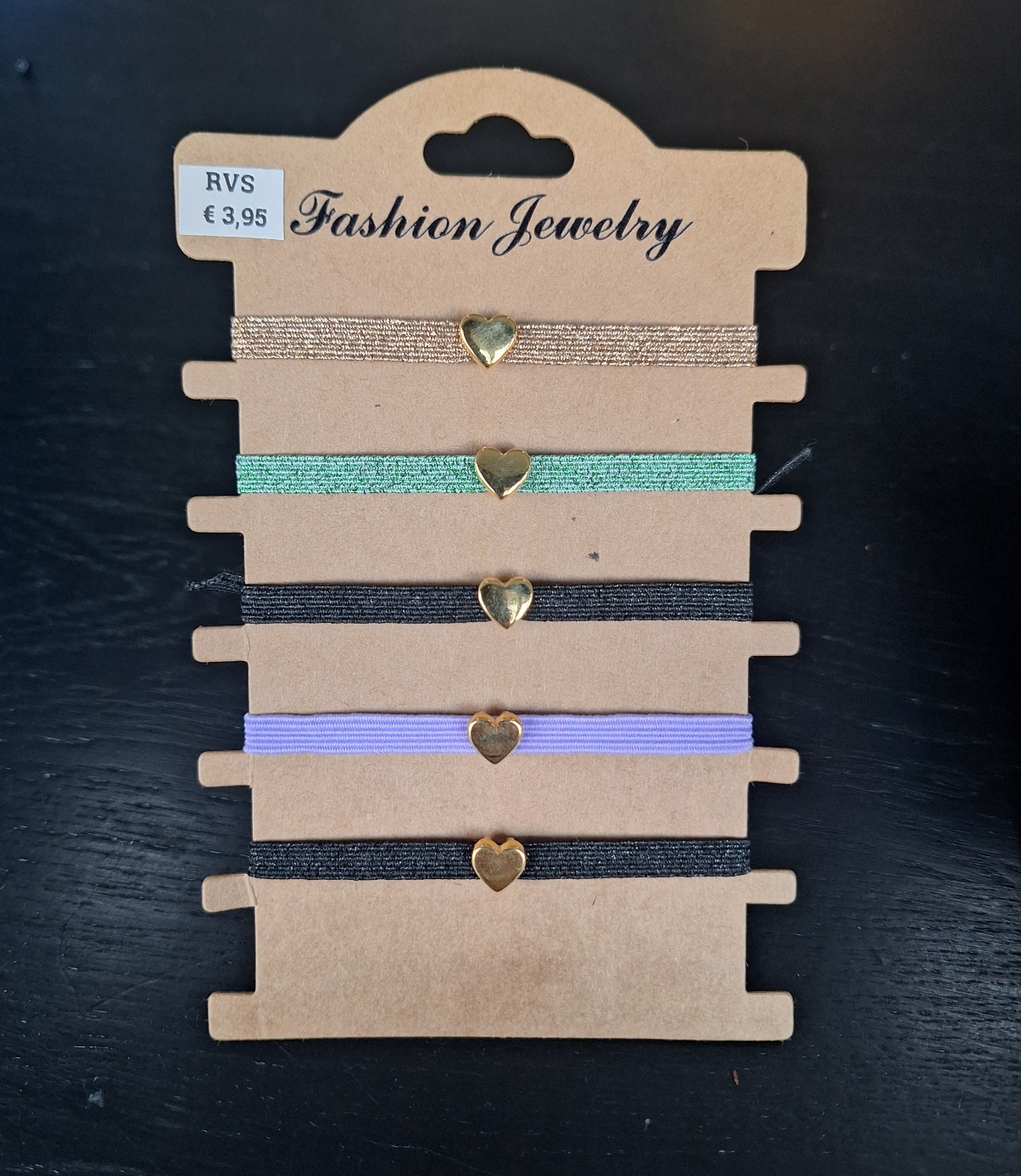 Handgemaakte armbandjes met knoopje of een goudkleurige kraal, dus voor elke polsmaat geschikt. Het hartje is van roestvrijstaal en blijft mooi!